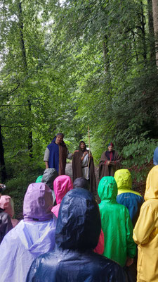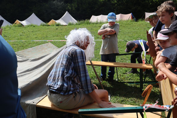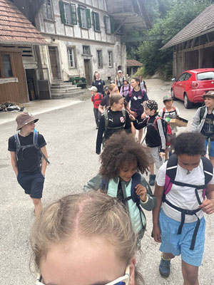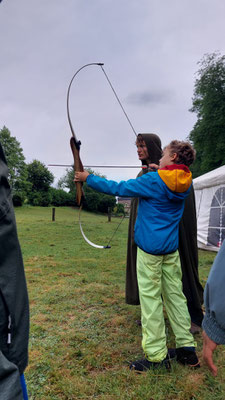Nachdem wir uns mit einem leckeren Frühstück gestärkt hatten, teilten wir uns in drei Gruppen auf. In diesen haben wir mit Robin Hood und seinen zwei Freunden verschiedene Kampftechniken angeschaut. Somit waren wir nun super auf den bevorstehenden Überfall vorbereitet. Nach dem Mittag informierten wir uns über das Mittelalter und hörten Geschichten von Robin Hood, welche er erlebt hat. Zum Abschluss führten wir noch ein kleines Theater auf. Drei Ritter hatten uns danach Überfallen, nahmen Robin Hood mit und hielten ihn gefangen. Nach dem Abendessen machten wir uns dann auf den Weg, um Robin Hood zu befreien. In einem Geländespiel erledigten wir Aufgaben und konnten schließlich Robin Hood befreien. Als Rache entschieden wir uns, den Rittern ihr Geld zu stehlen. Diese Mission schlossen wir erfolgreich ab.