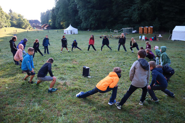Am Morgen wurden wir passend mit einem Barbie-Lied geweckt und anschließend haben wir Mofi (Morgenfitness) gemacht.